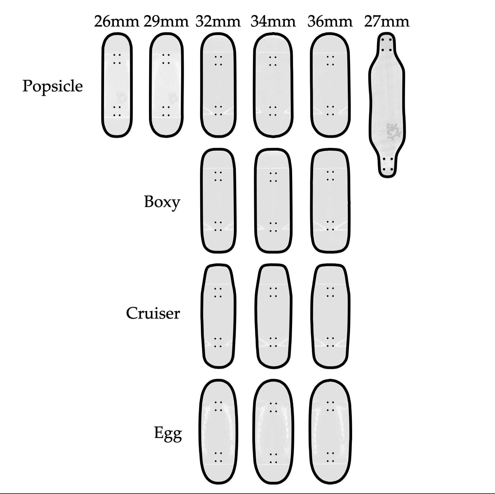 Shapes: Popsicle, Boxy, Cruiser, Egg, Longboard